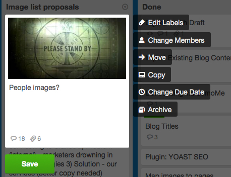 Clicking on a Card provides a way to modify it easily within a project: Edit Labels, Change Members, Move, Copy, Change a Due Date or Archive